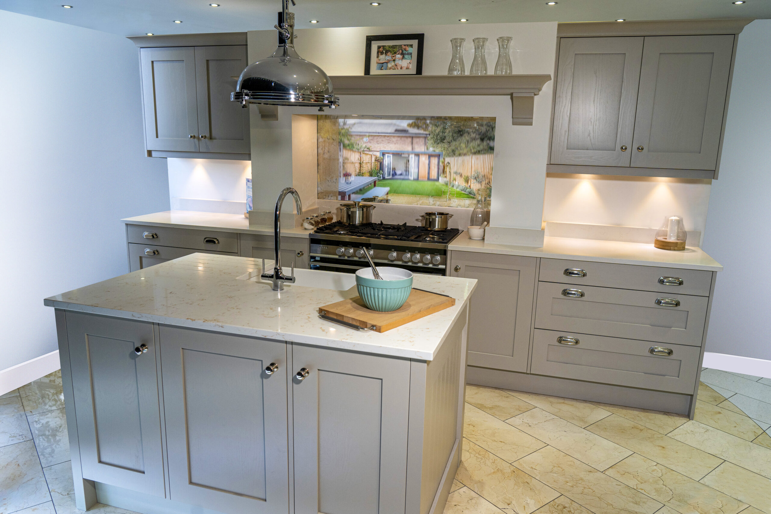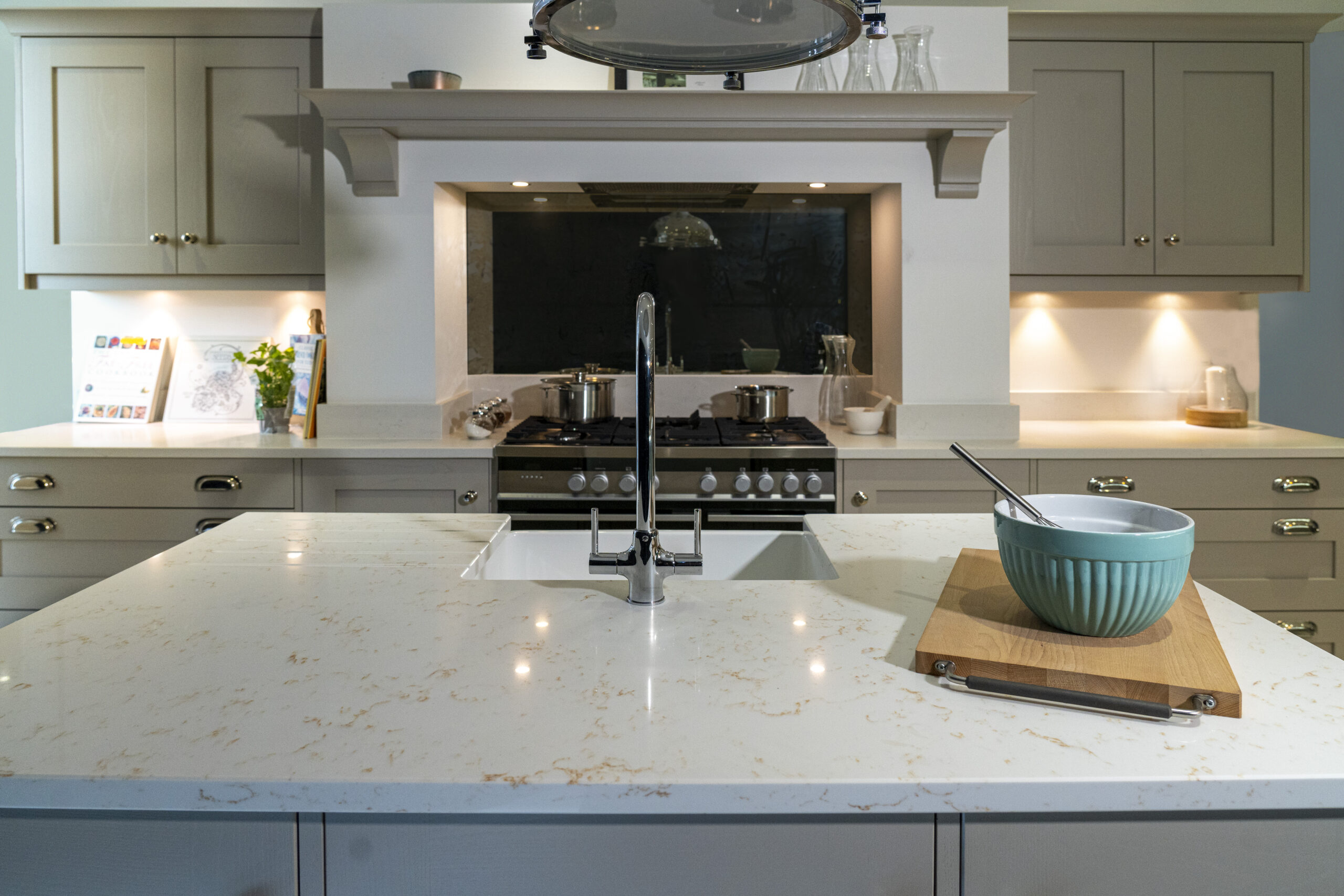 Take a look around this beautiful kitchen finished in Gold Carrara Quartz and see how its warm veining, bright tones and polished finish create an elegant, luxurious centrepiece.