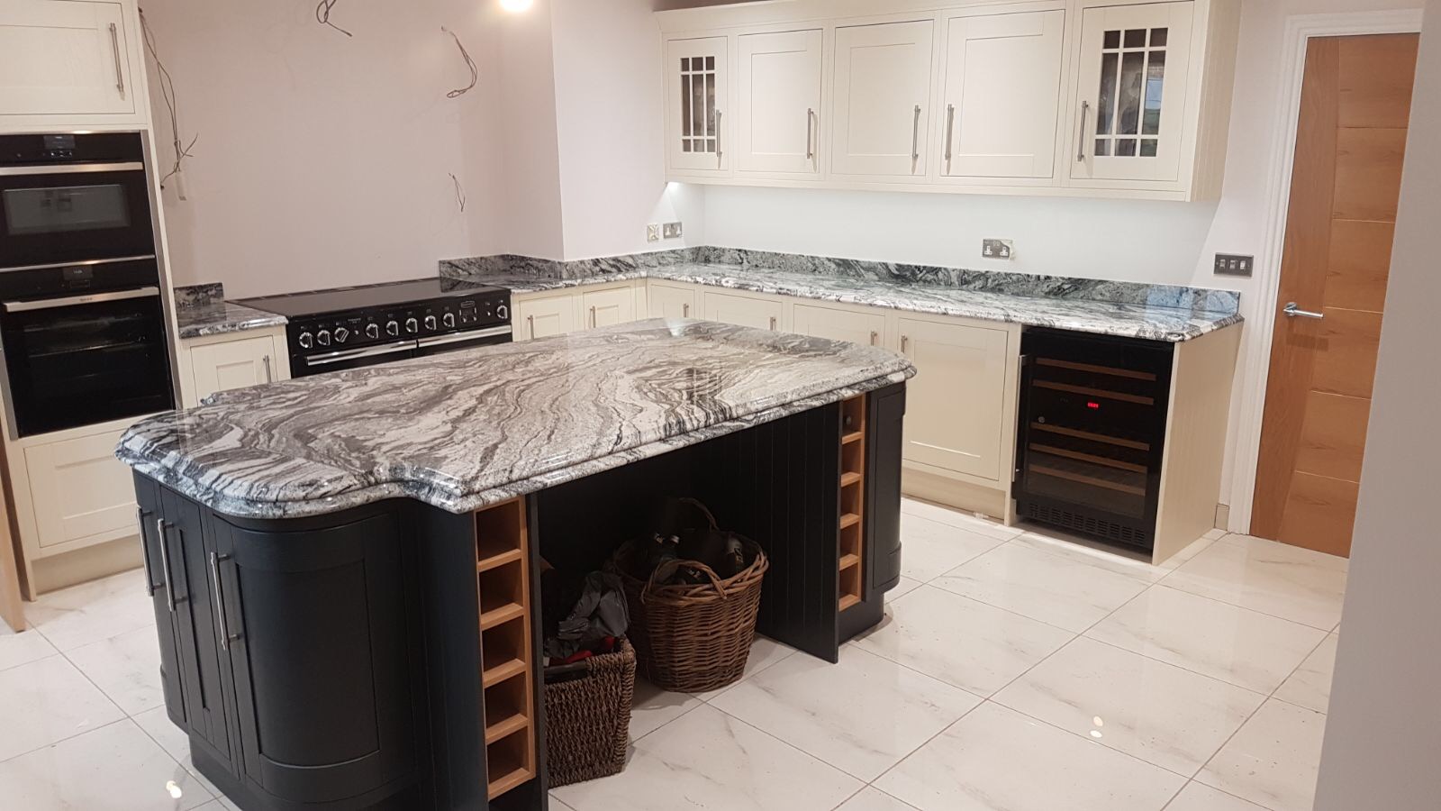 View Viscount White Granite up close and discover its swirling grey veining, crisp white background and polished finish that deliver a bright, luxurious feel to family kitchens.